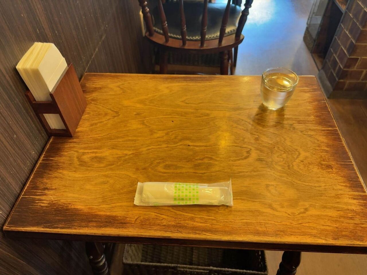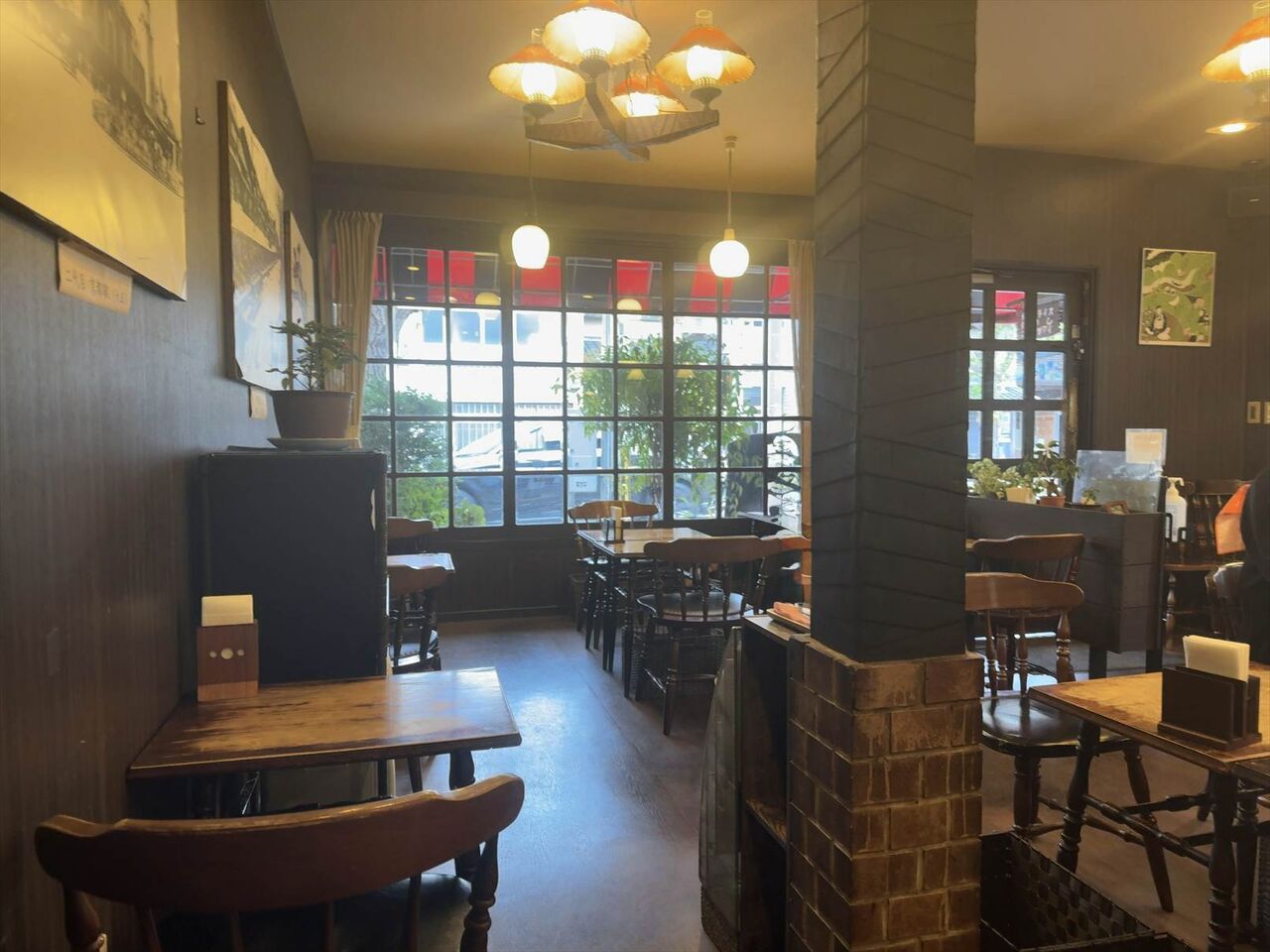 店内は昭和から時間が止まったようなレトロ喫茶です。壁際には珍しい一人掛けのテーブルが並びます。