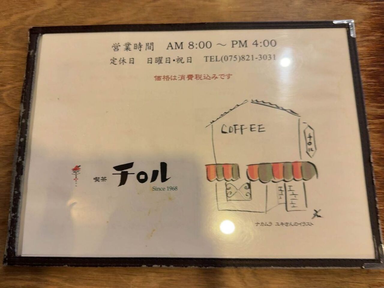 京都市中京区門前町、二条城の南、御池通と神泉苑通の角にある喫茶店。京都でも有名な老舗喫茶店ですが初訪問です。