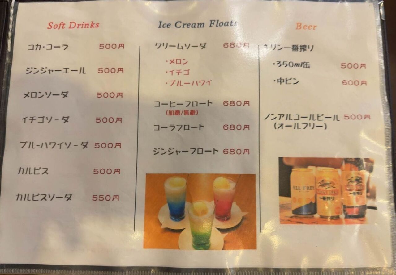 クリームソーダやコーラフロートなんかがラインナップされています。
