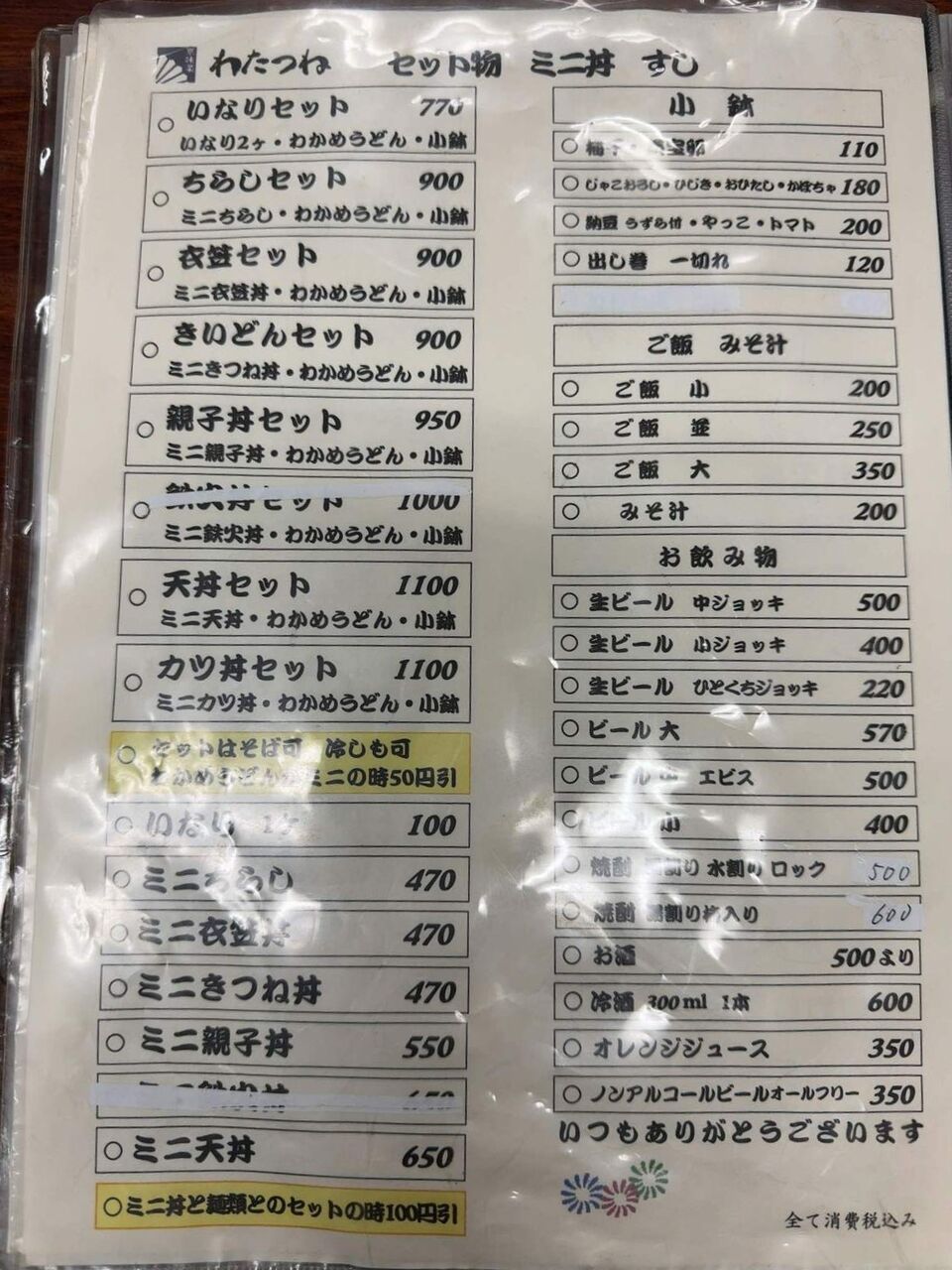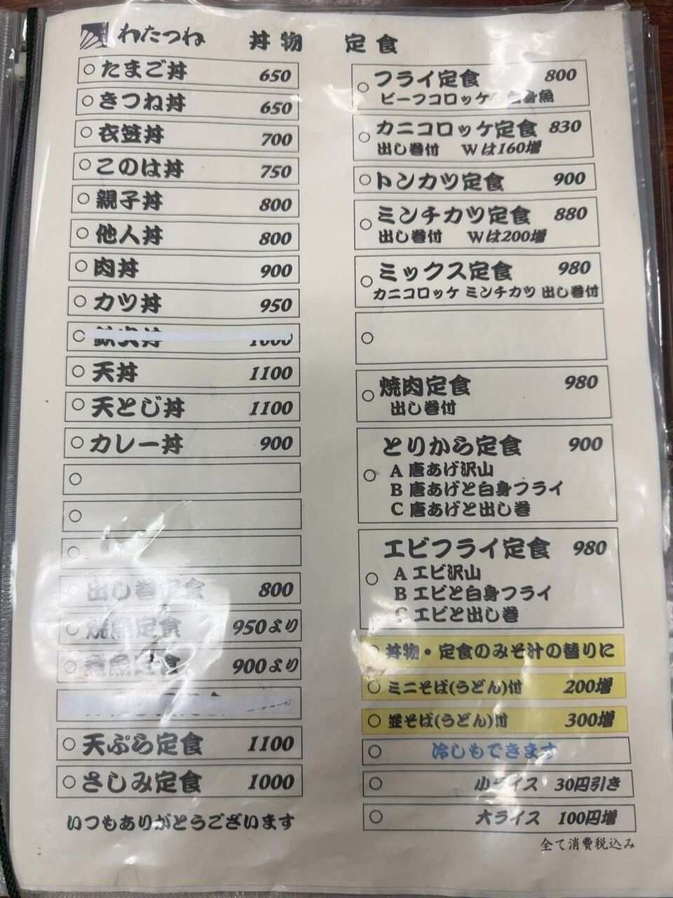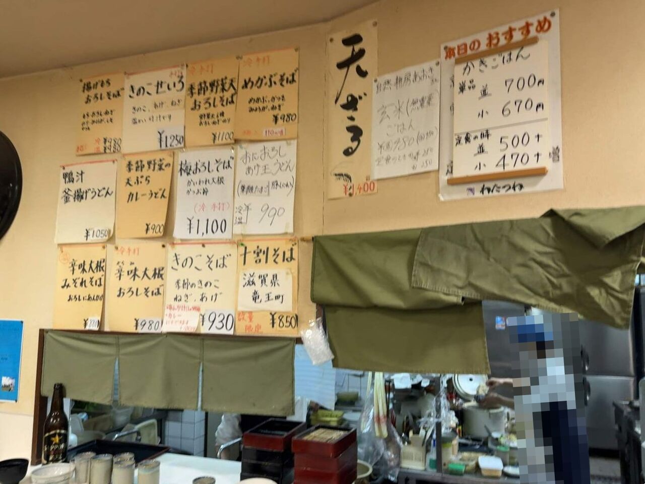 こちらの衝立のメニューは見落としていました。たら白子天定食やかす汁は魅力的です。