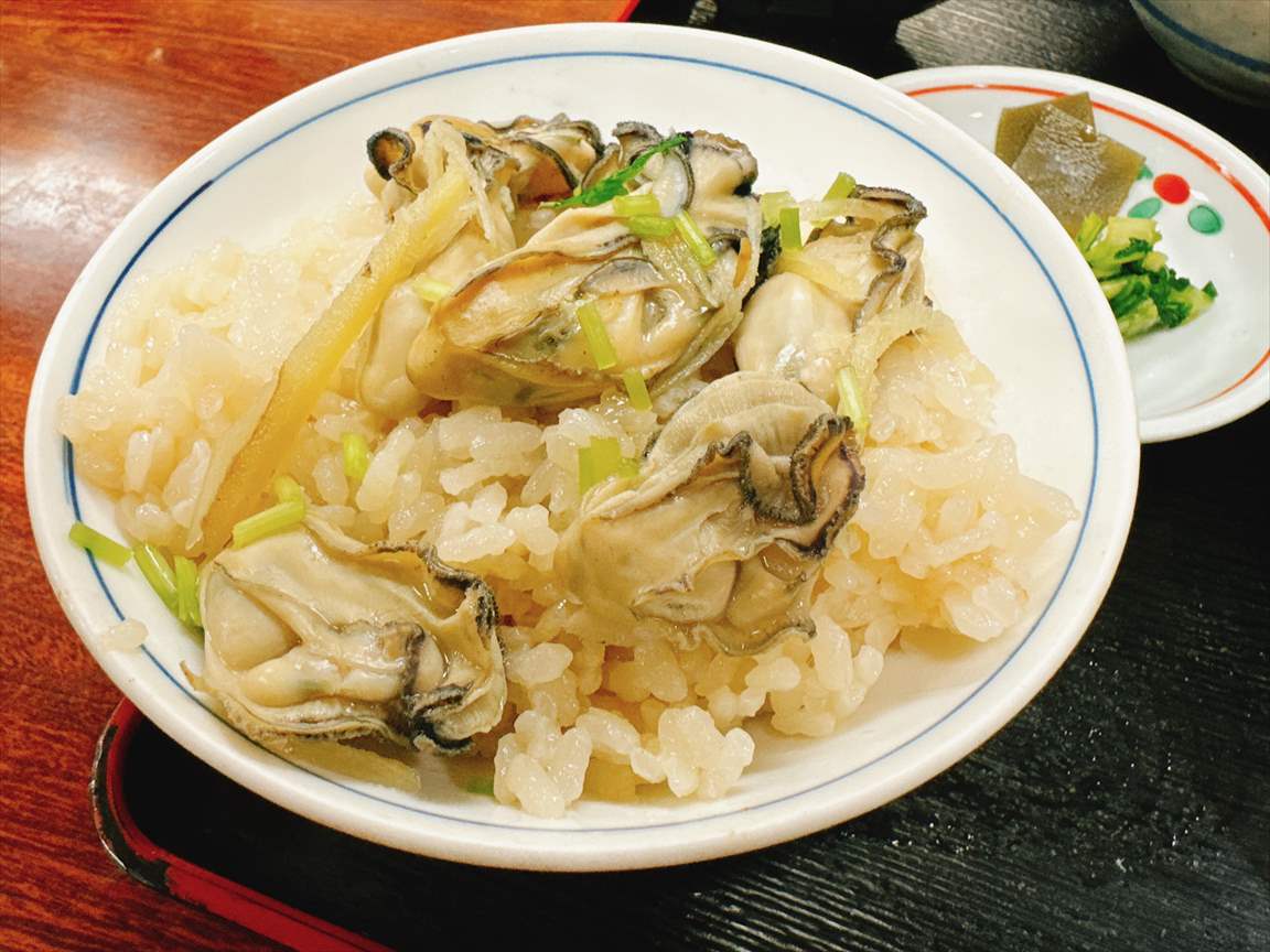 お目当てのかきごはんは圧巻の牡蛎の量です。ご飯はしっとりとしてしっかり味がしゅんでいます。身も濃厚で牡蛎の風味が押し寄せてきます。