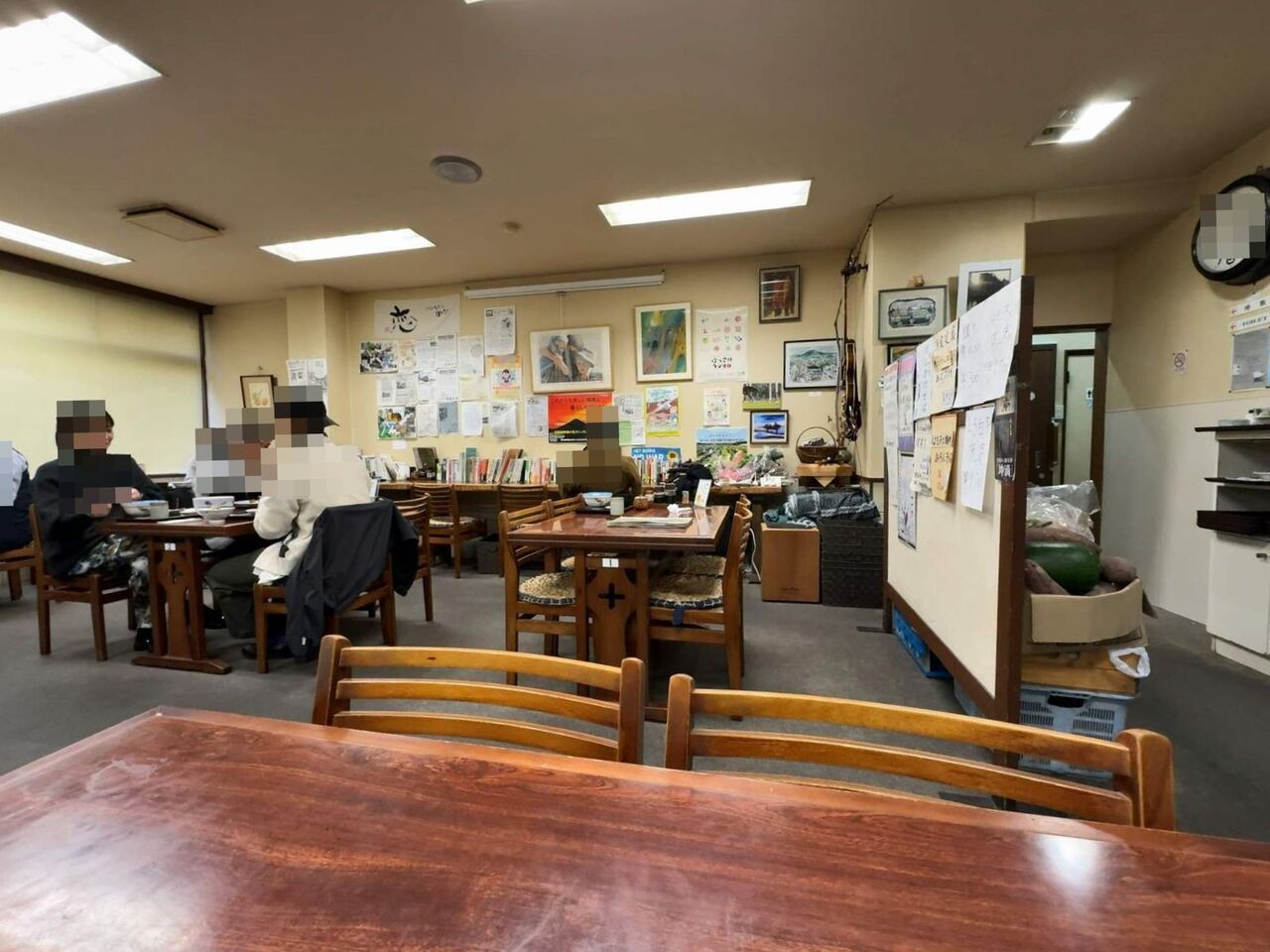 店内はかなり広く4人掛けテーブルがならび壁際にカウンターがあります。