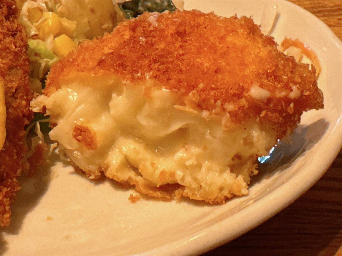 特製エビクリームコロッケはエビだけでなく、マッシュルームやタマネギなど具沢山です。