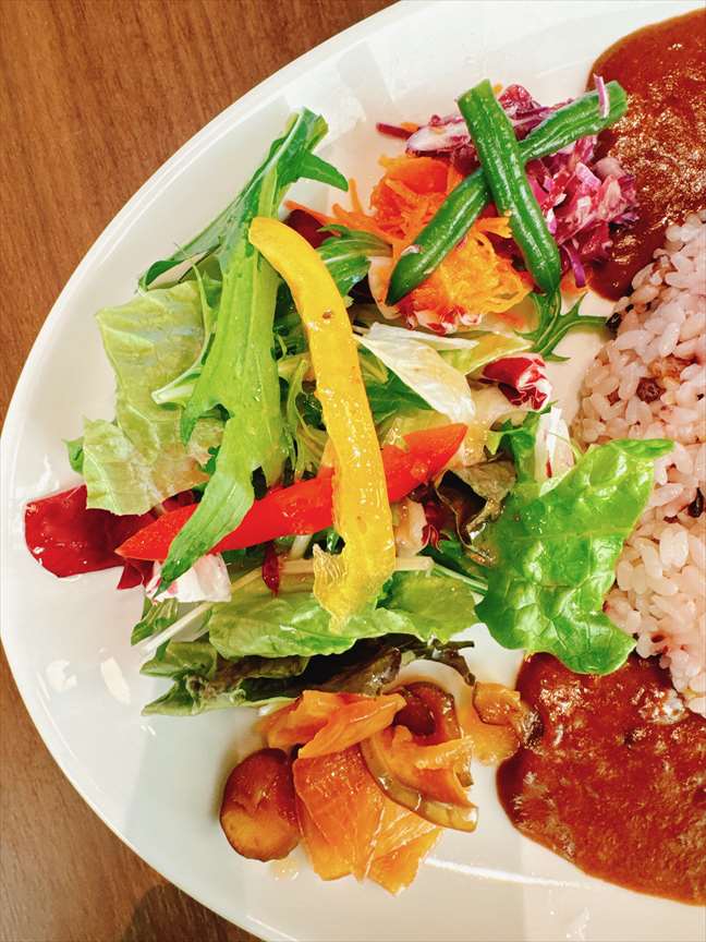 サラダにパプリカやニンジンなどが入って彩りが豊富です。