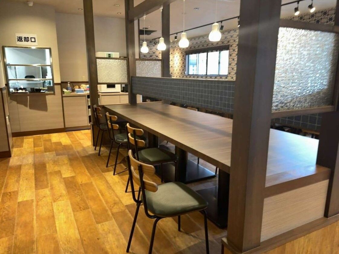 清潔なイメージの内装です。厨房前に対面カウンターがあります。