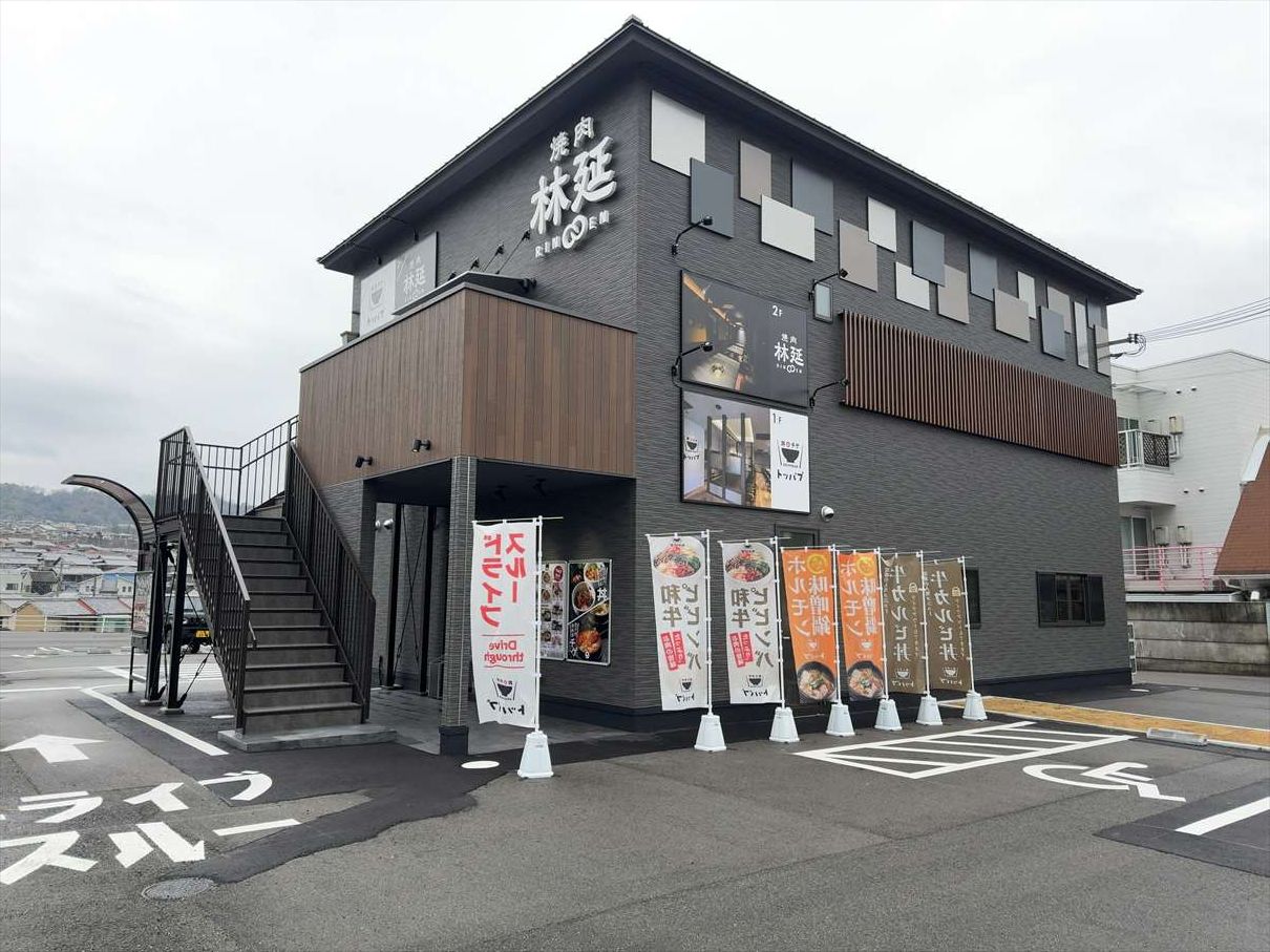 ビックリドンキーと共用の大きな駐車場にポツンとお店が建っています。2Fは焼肉屋のようです。