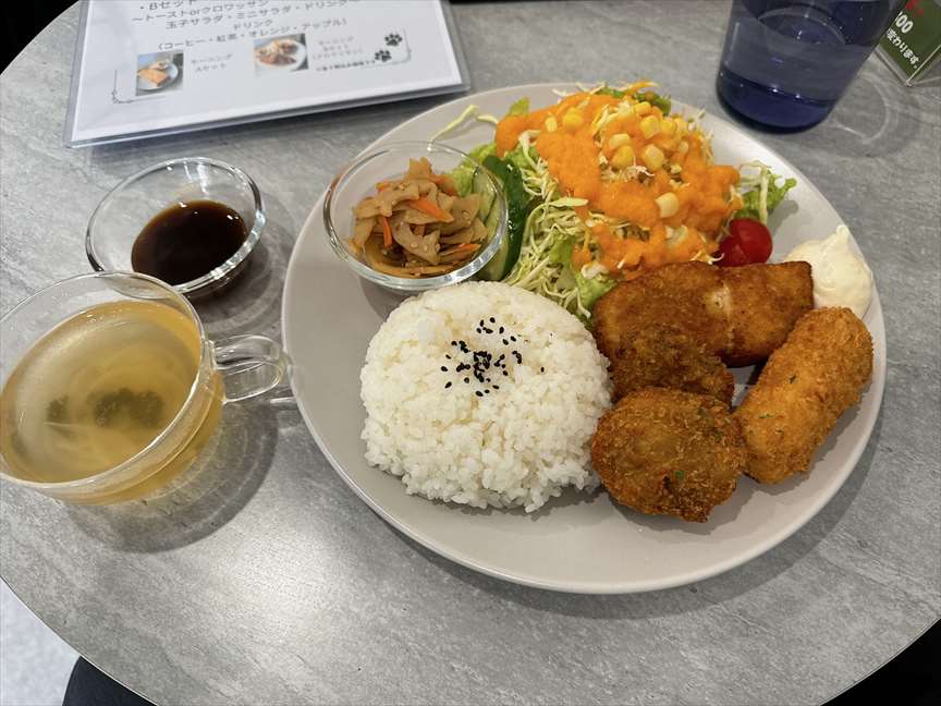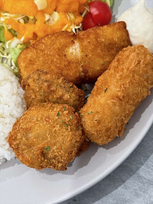 表の黒板を確認していたのでクリームコロッケが決め手で、「ミックスフライプレート」900円を注文します。