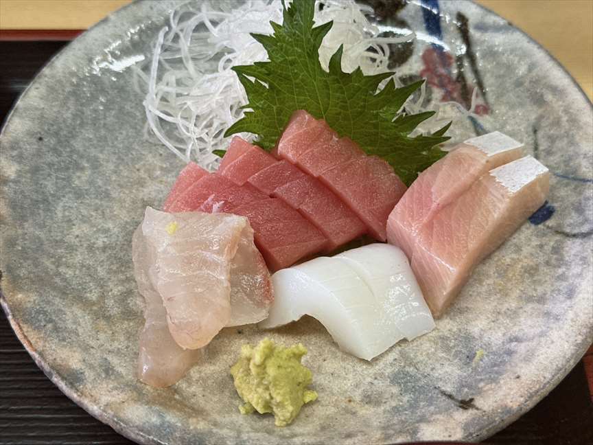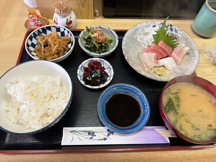 ちょっと豪華な刺身定食が出てきます。