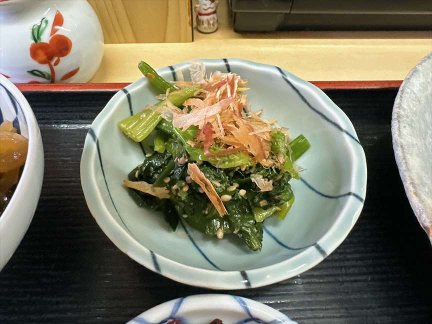 小鉢としてチョコッとほうれん草のおひたしが付いています。