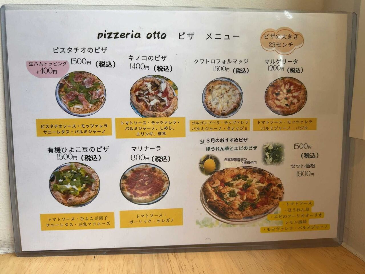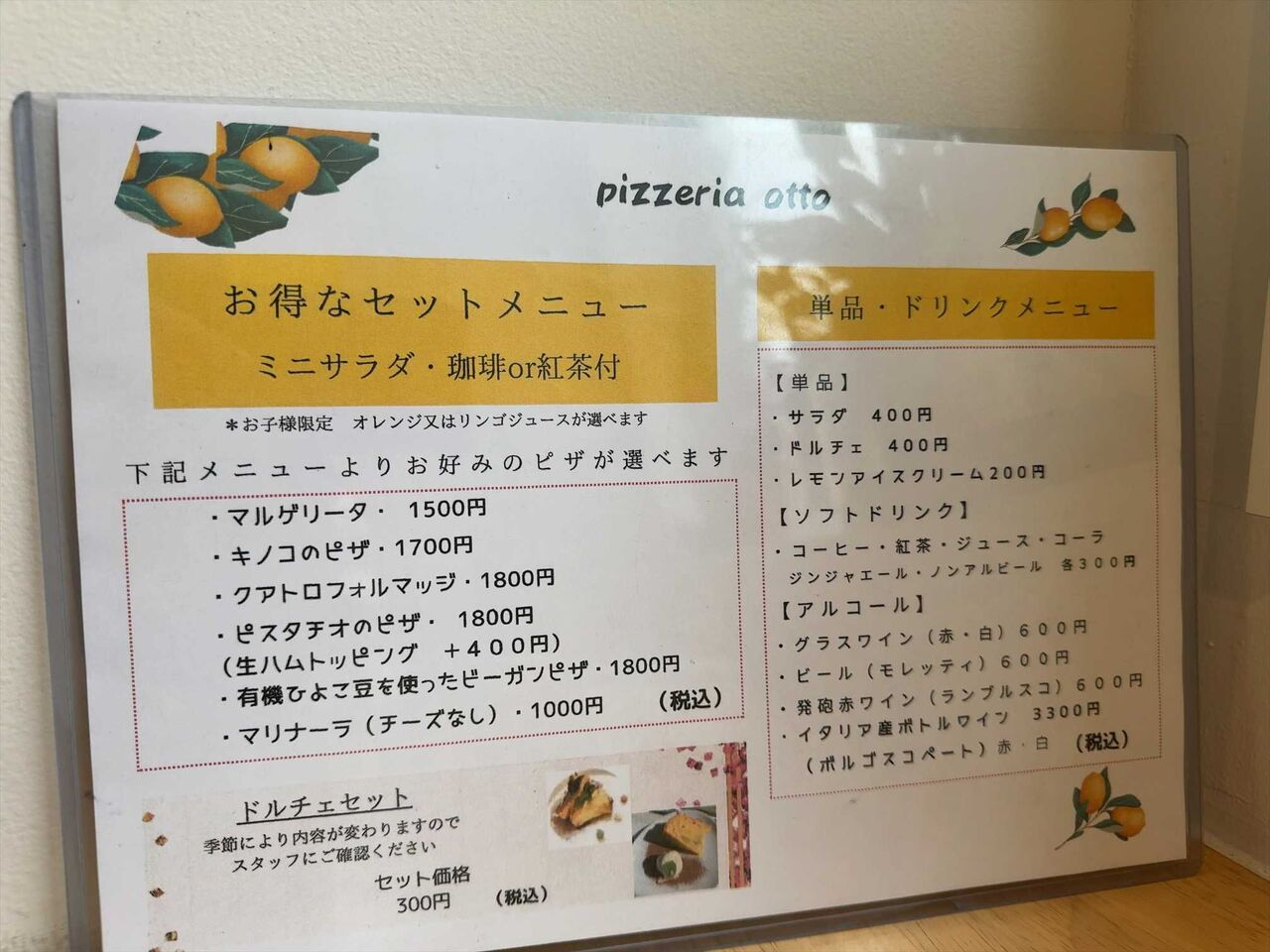 ピザに+300円でセットになるようです。定番の、「マルゲリータセット」1500円を注文します。