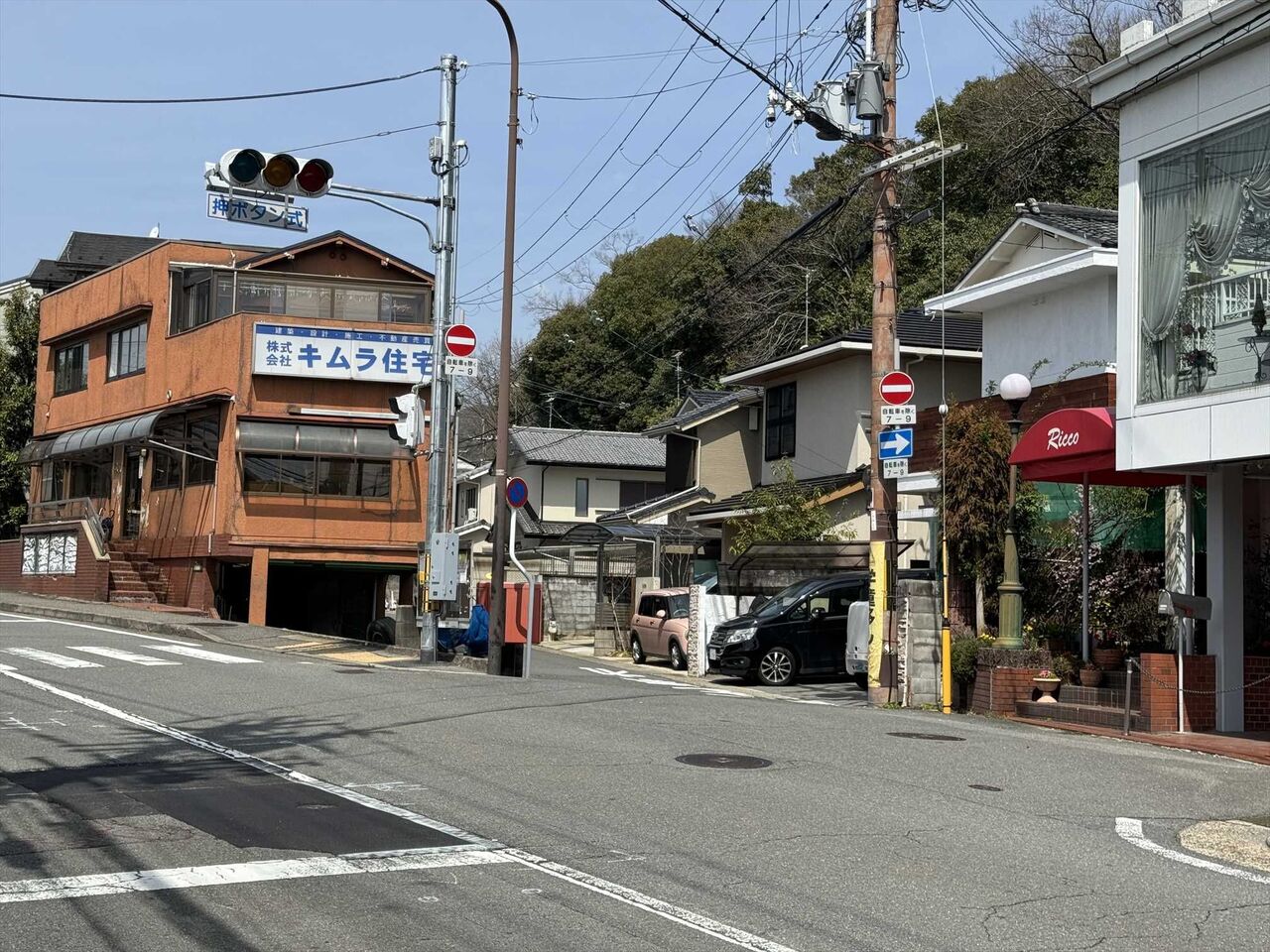 先は道が少し広くなって住宅が並びます。