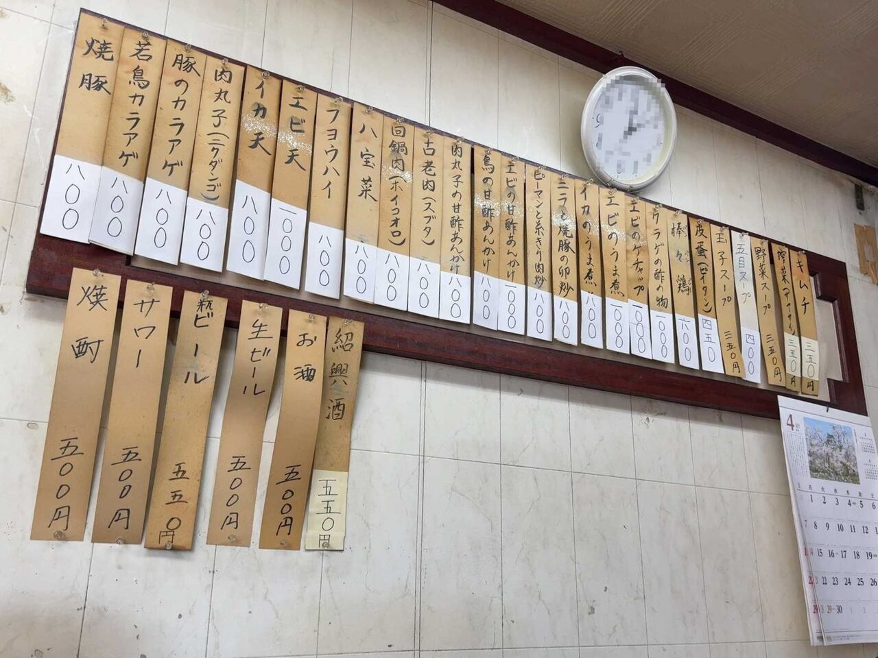 メニューは壁の短冊のみのようです。中華の単品が並びます。