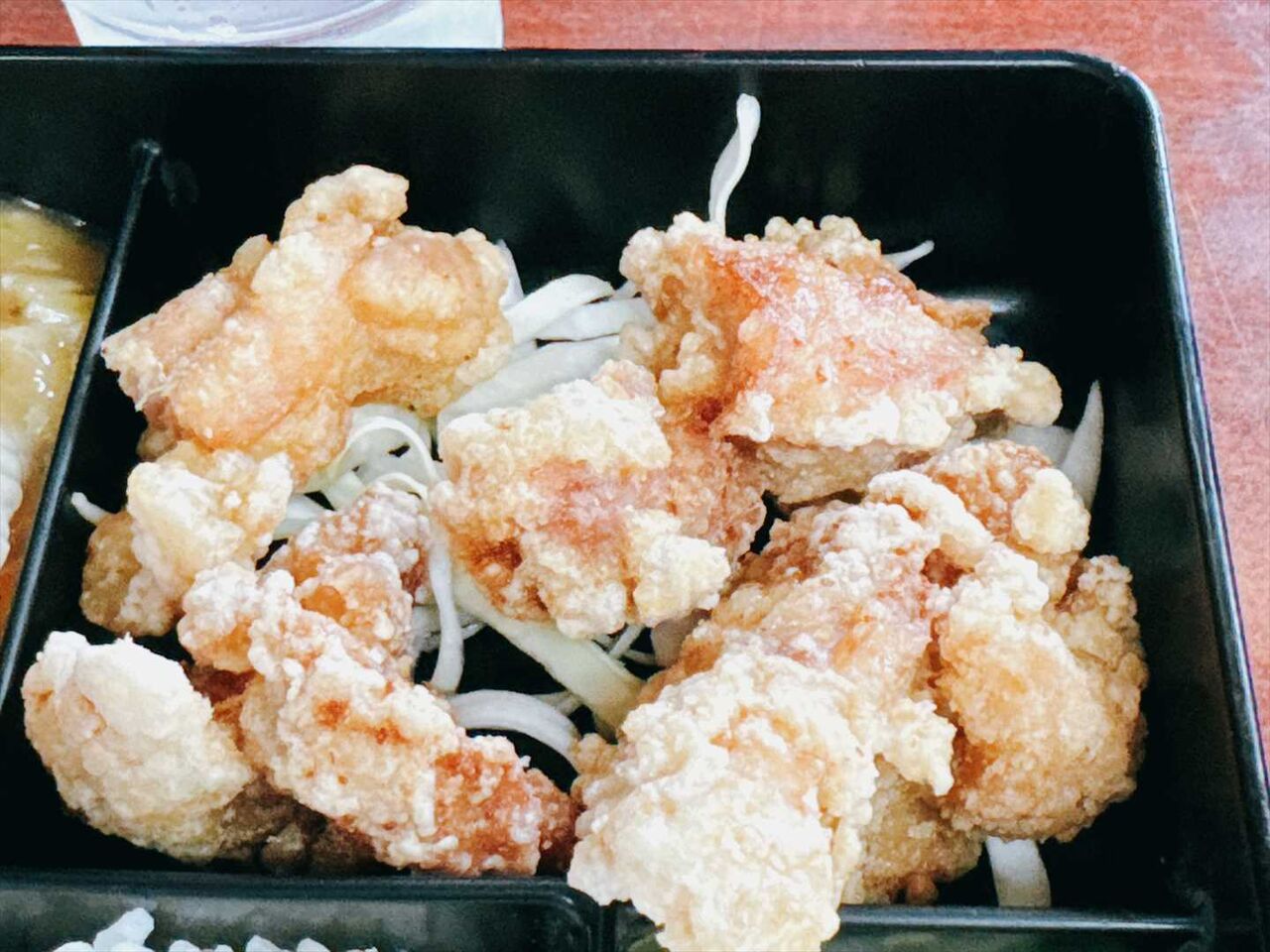 から揚げは鶏が柔らかで薄いですがちゃんと味が付いています。