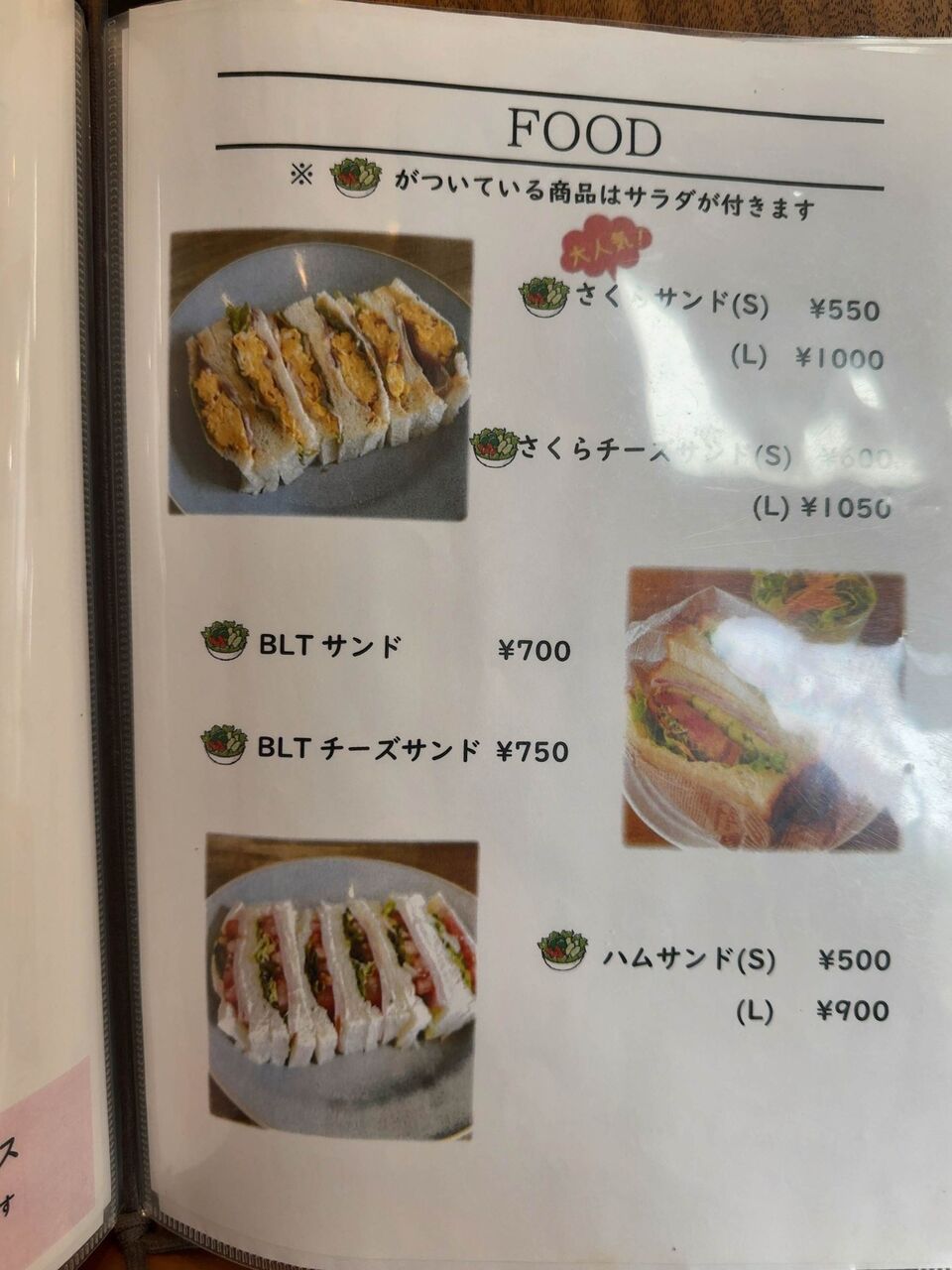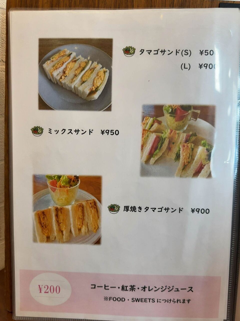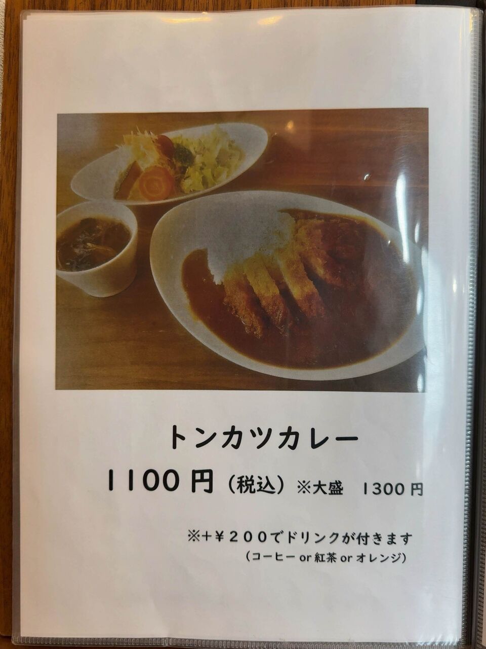 フードメニューにはカツカレーやサンドイッチが並びます。