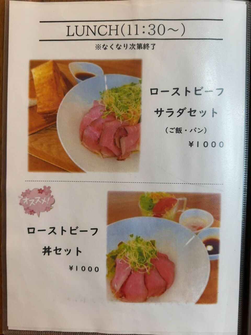 ランチタイム限定のメニューもあってローストビーフ丼に、