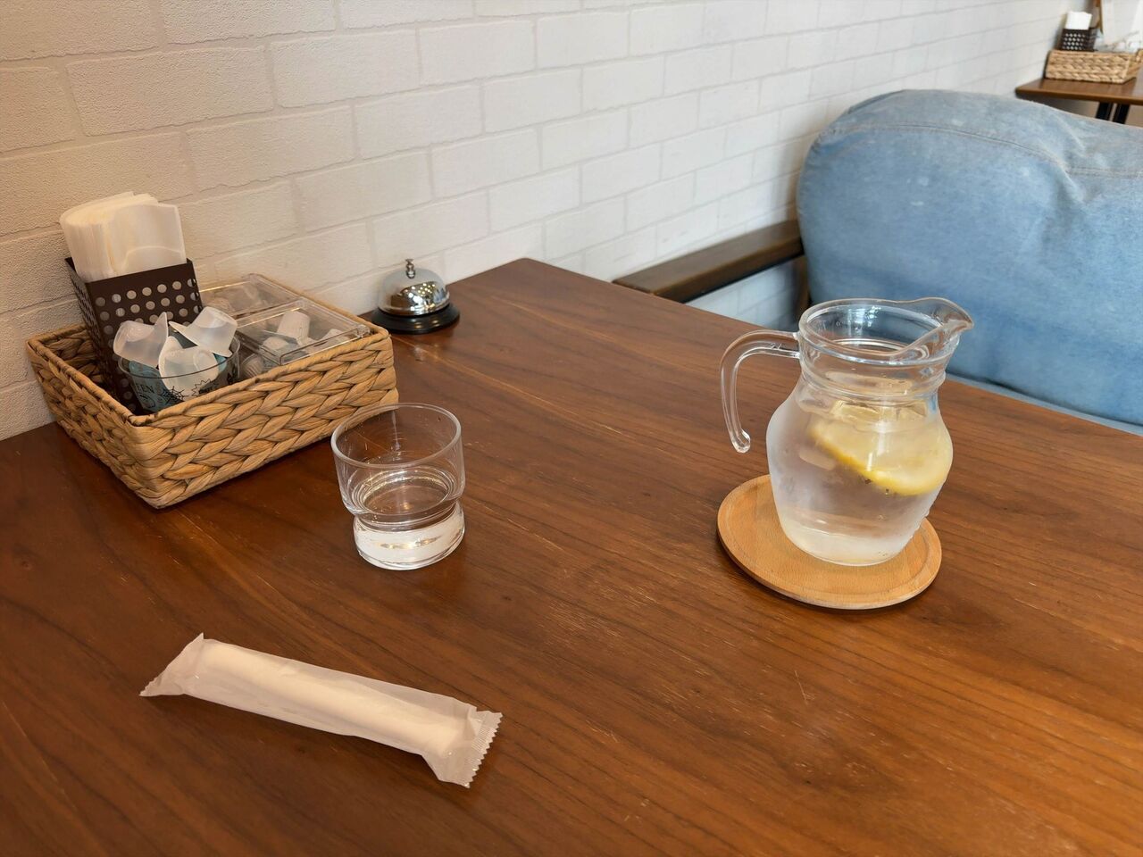 テーブルにはレモン入りのカラフェと一緒にお冷やが出てきます。