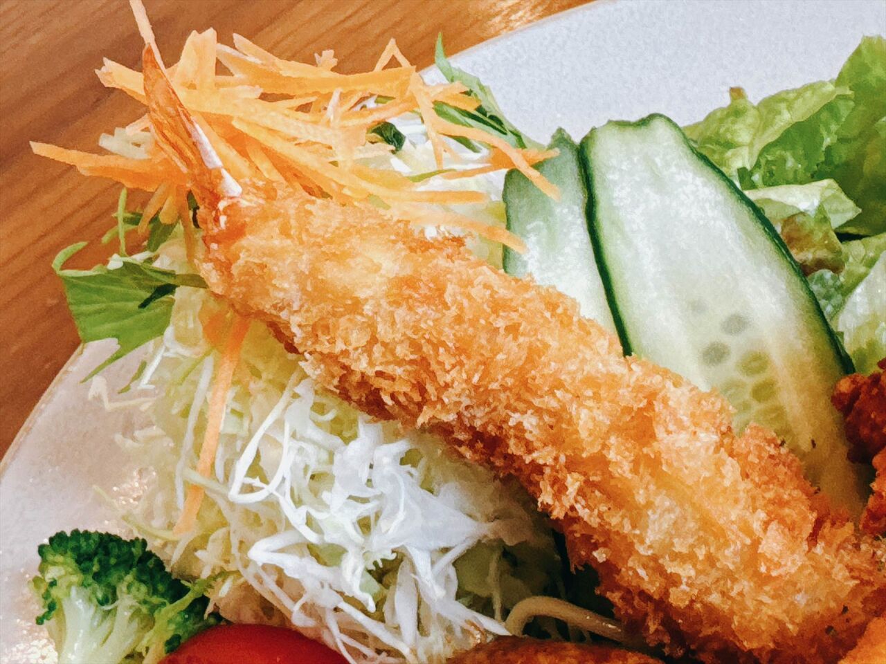 エビフライは衣がサクサクです。