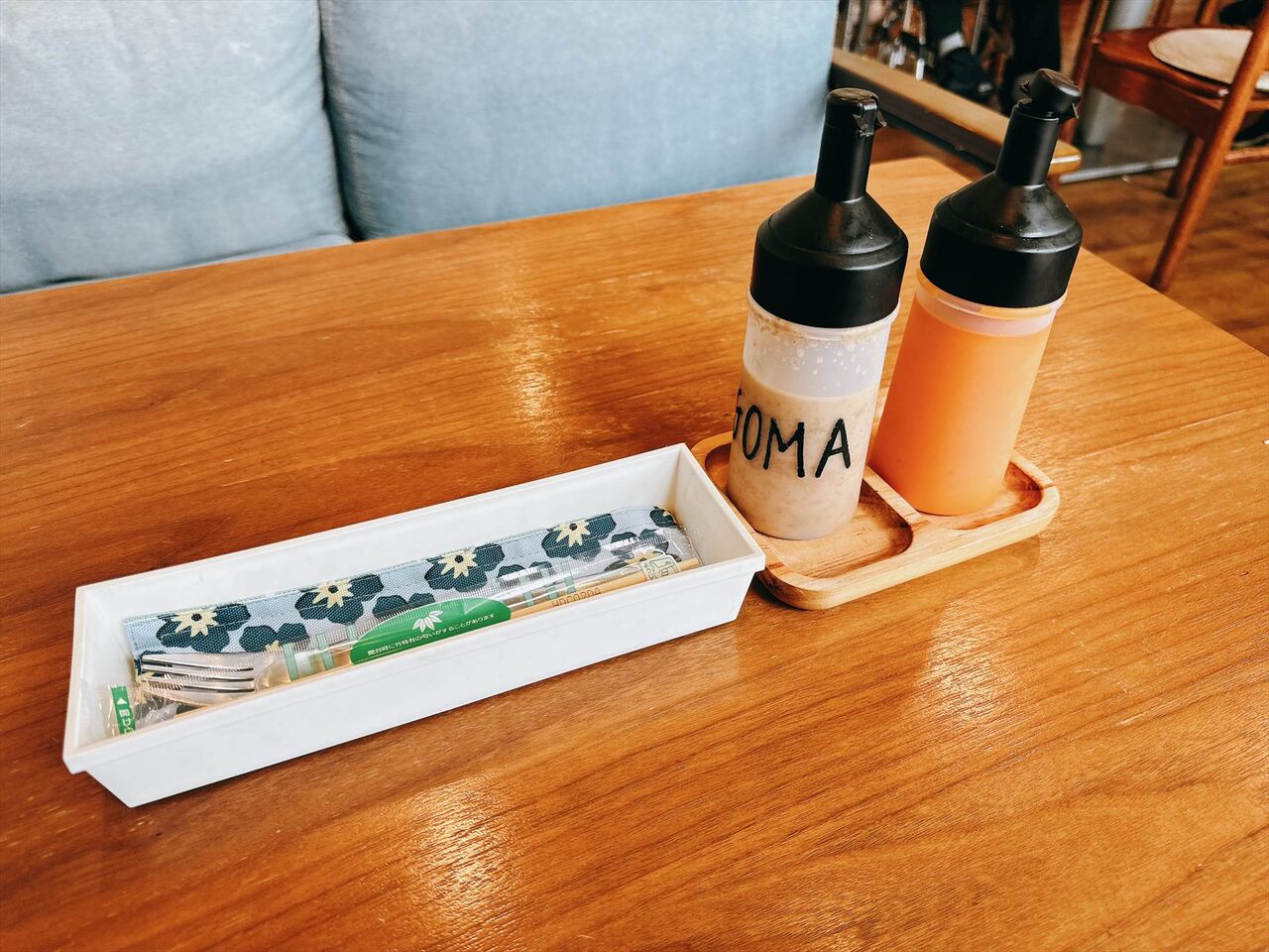 お箸やフォークと一緒に自家製のドレッシングが用意されます。