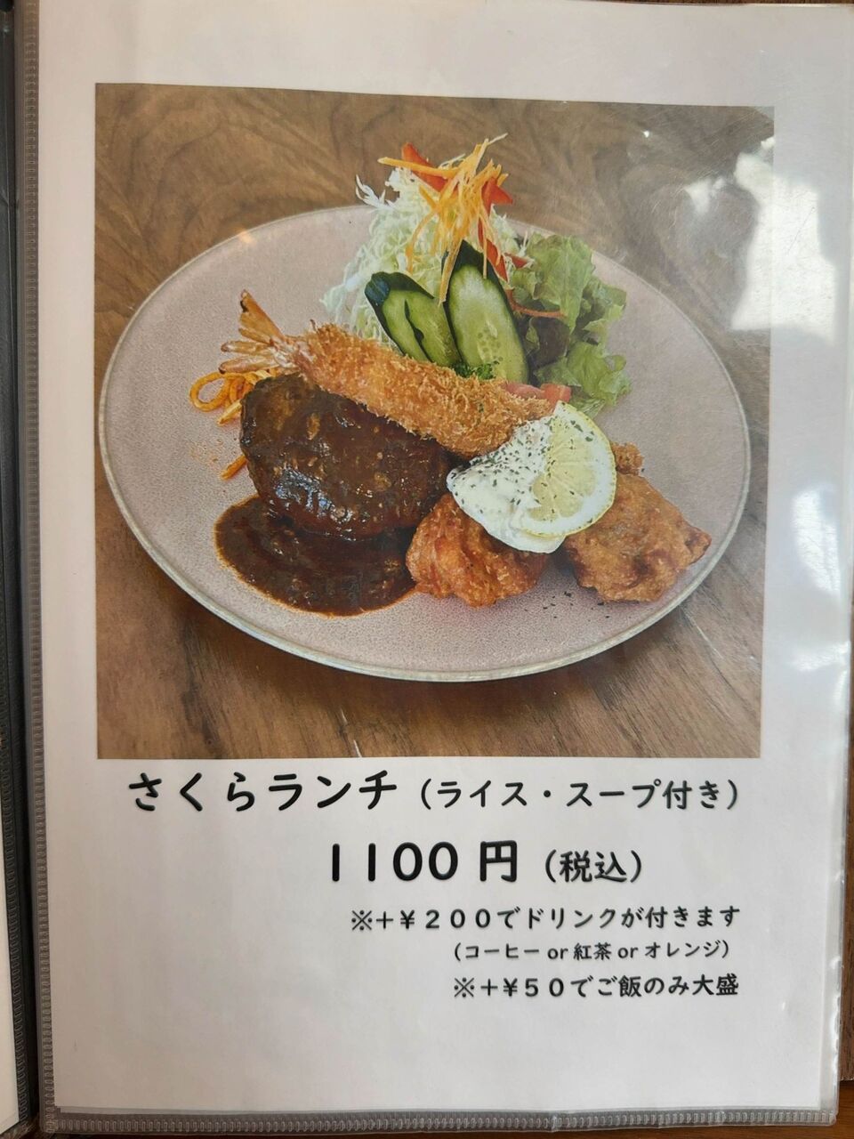 満を持して屋号を冠したランチもあります。やっぱりいろんなメニューが楽しめる、「さくらランチ」1100円を注文します。