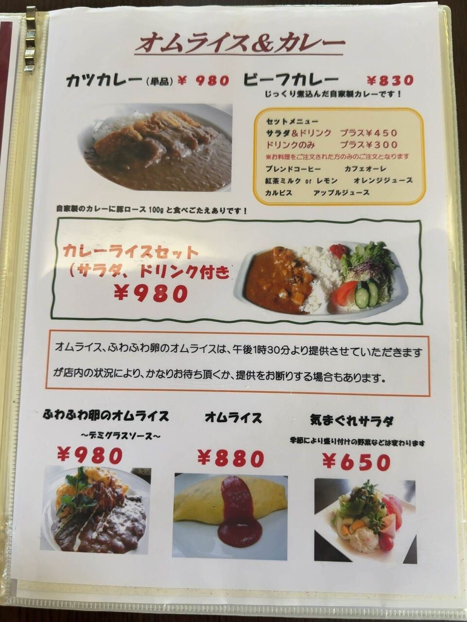 カレーやオムライスもおいしそうです。オムライスは時間がかかるようです。