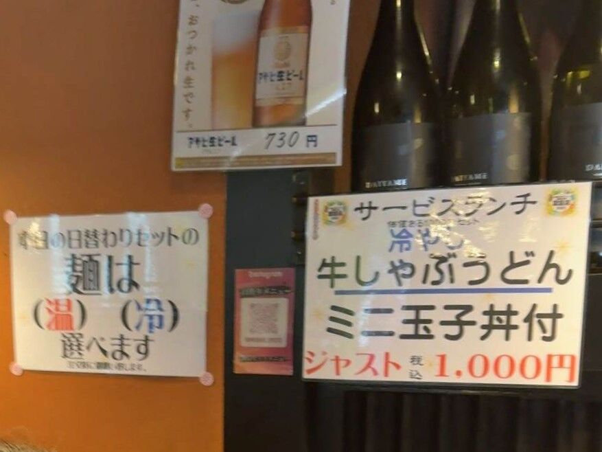 サービスは冷やし牛しゃぶうどんと玉子丼です。