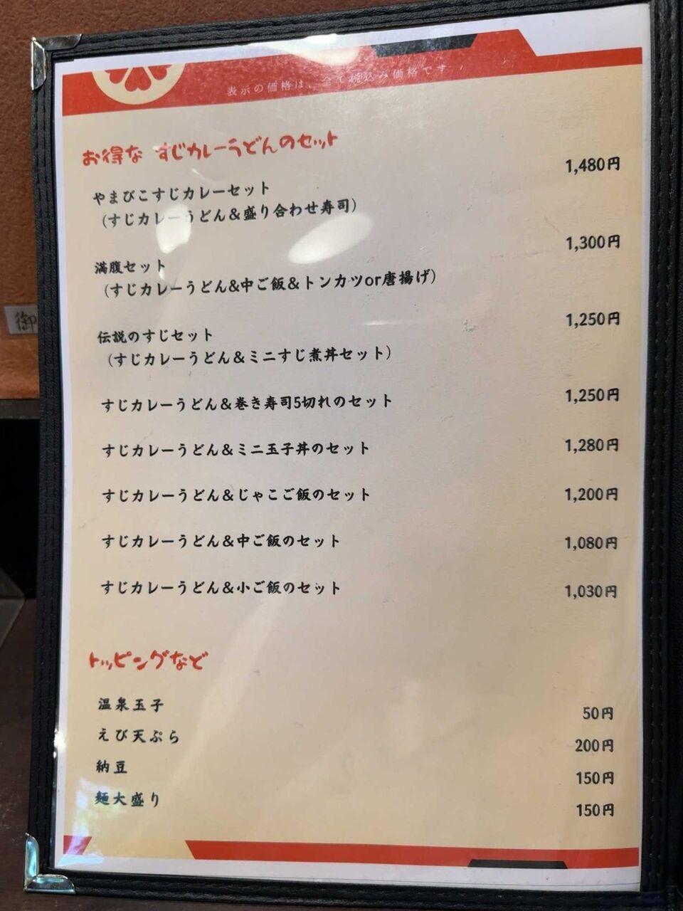 メニューのトップにはすじカレーうどんを中心にご飯もののセットがいろいろと並んでいます。