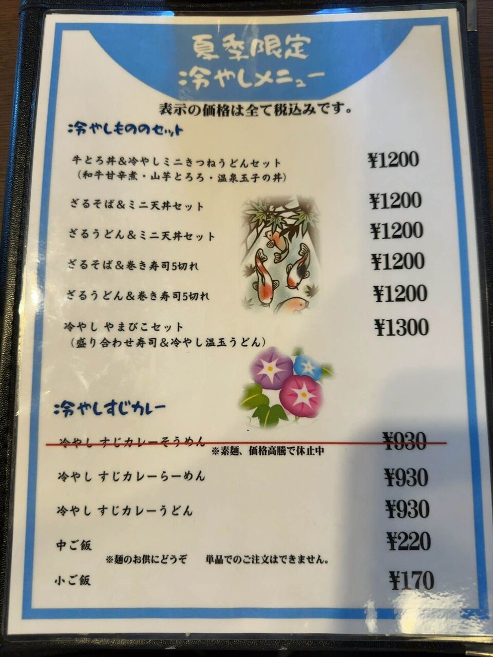 表で確認していますが、「冷やしすじカレーらーめん」930円を注文します。
