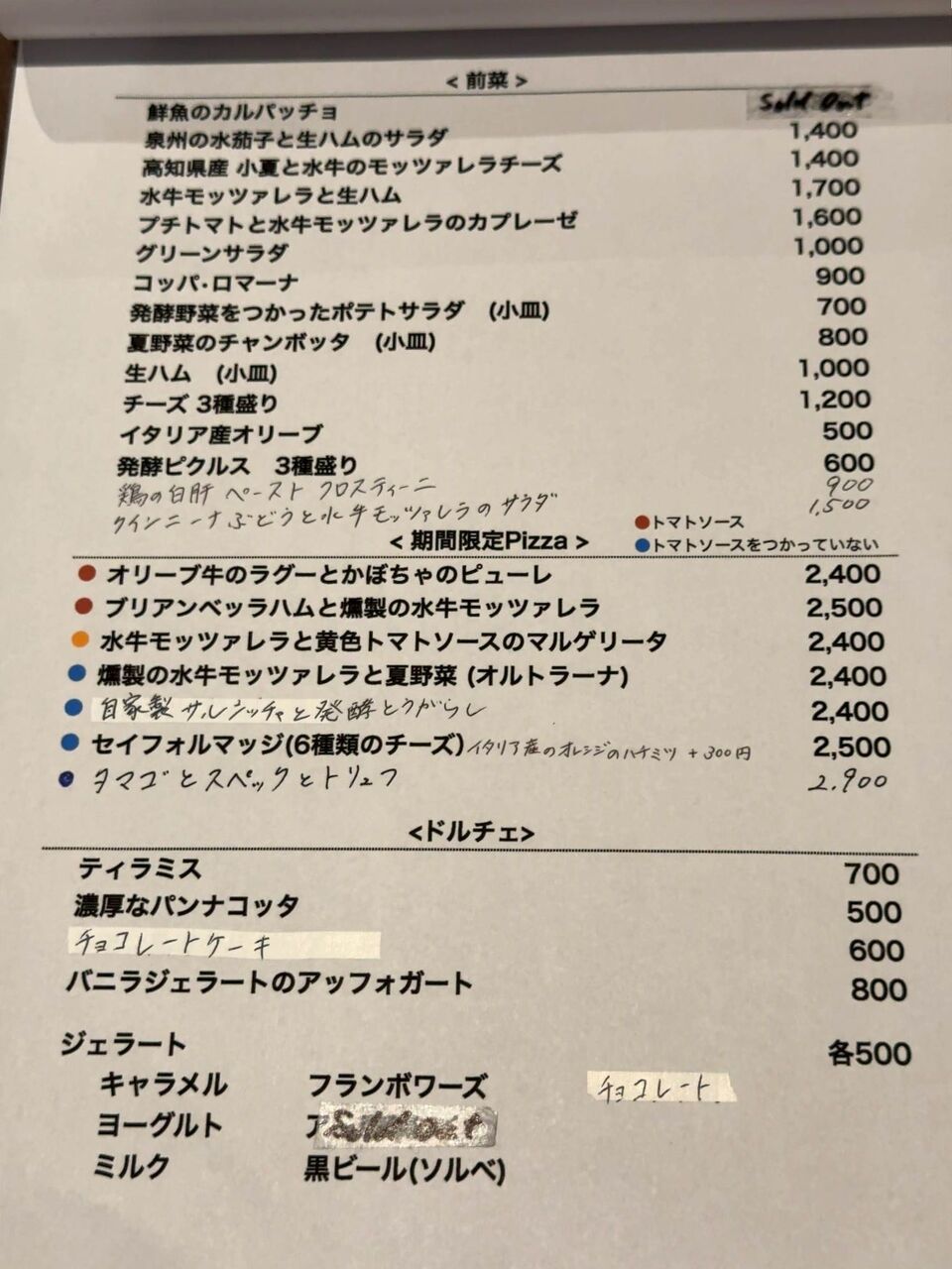 前菜なんかも用意されています。期間限定のピザも用意されています。まあ初めてですから定番で、「マルゲリータ」1700円をオーダーします。