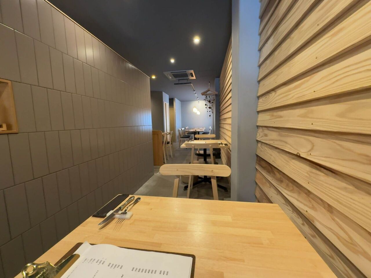 テーブルにはナイフとフォークとおしぼりがセットされてます。