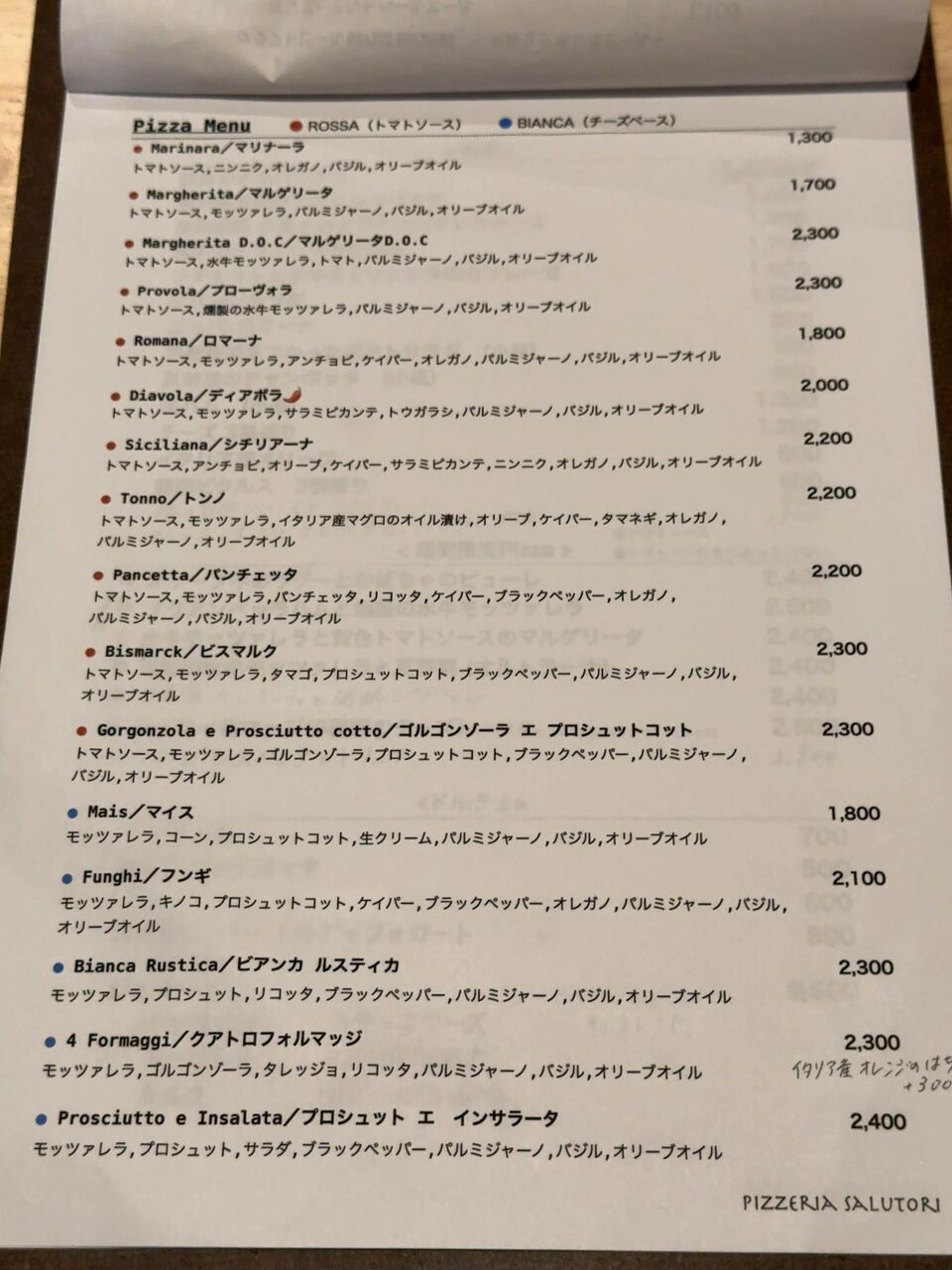 メニューにはずらっとピザの名前が並びます。