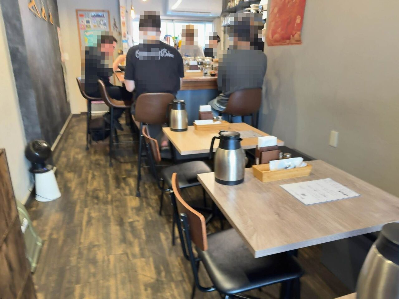 狭い店内ですが入り口にテーブル、奥に厨房を取り囲むL字カウンターがあります。
