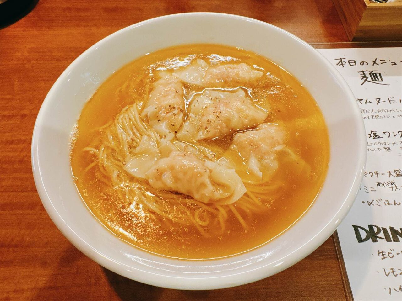 ワンタンはエビがタップリ入っていてプリプリで皮がツルツルでおいしいです。