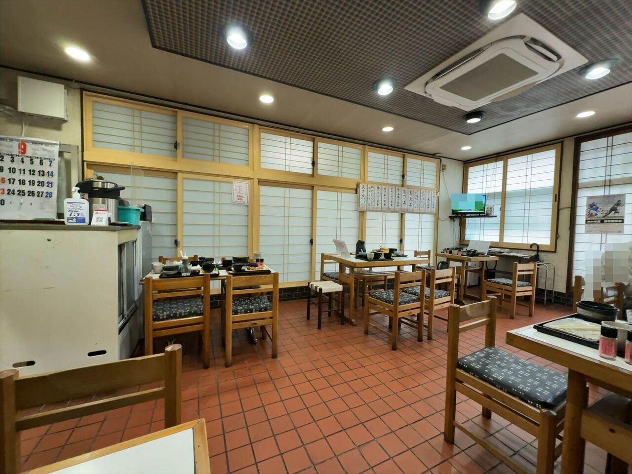 5分ぐらいで無事入店です。店内はテーブルが整然と並んでいます。