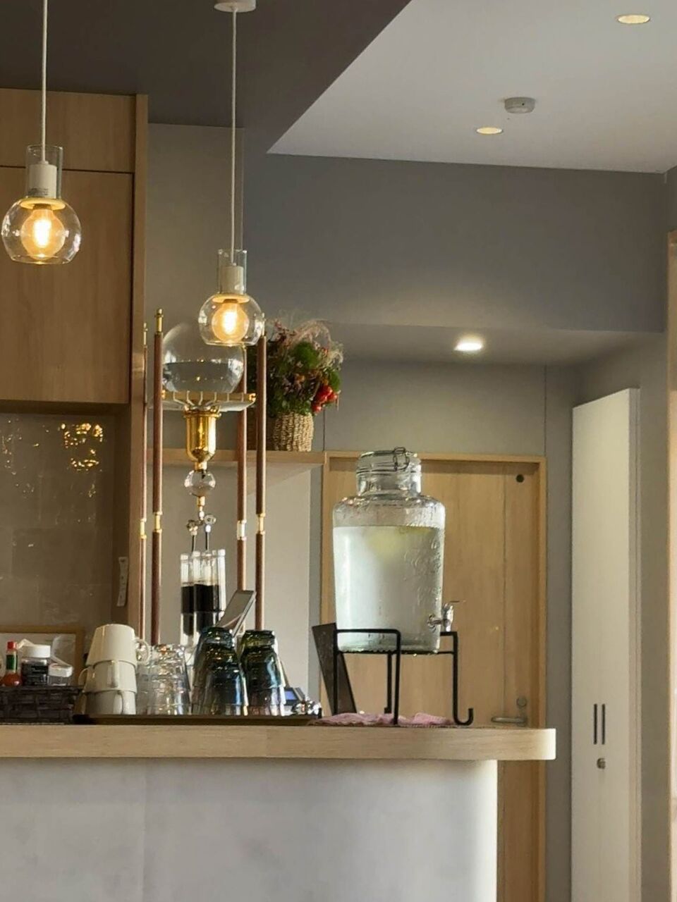 ガラスのウォーターサーバーも置いてあってお冷やはセルフかなと思っていたら店員さんが注ぎに来てくれます。