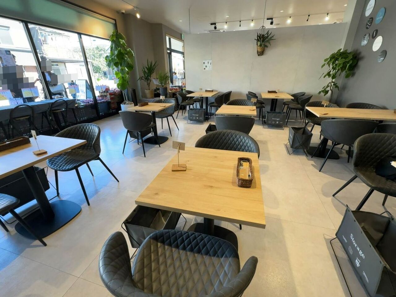 かなり広い店内にテーブルが並びます。ガラスの外や隙間からお客さんが見えますが、隣に京都よつ葉屋青果という八百屋さんがあって同じ系列のようです。八百屋さんは安くて品質がよいのか大人気で駐車場が一杯ですが回転は早いです。