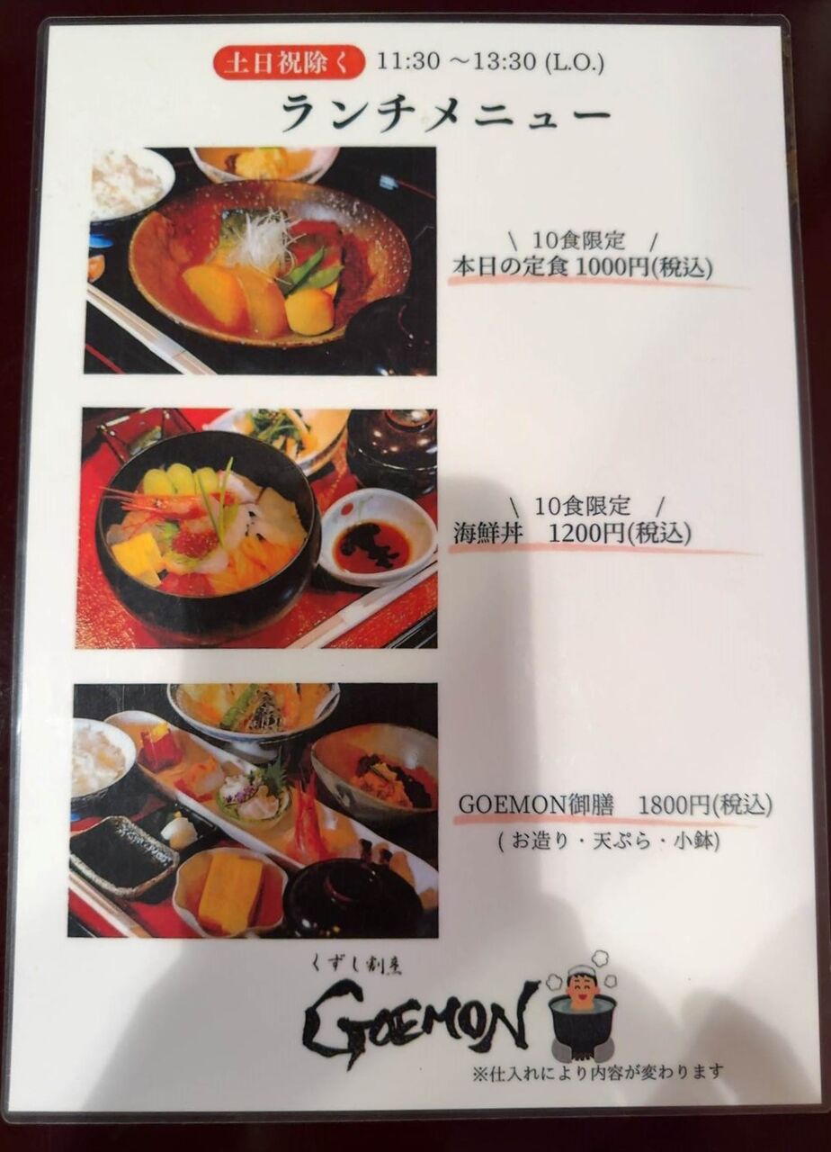 今日のランチは、「くずし割烹 GOEMON」。