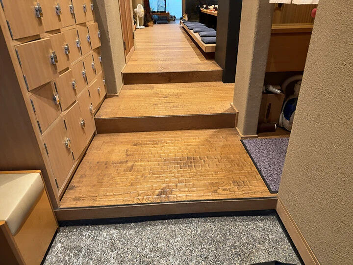 玄関で靴を脱いで靴箱に入れるスタイルです。入るのに難度が高いのにけっこうお客さんが入っています。