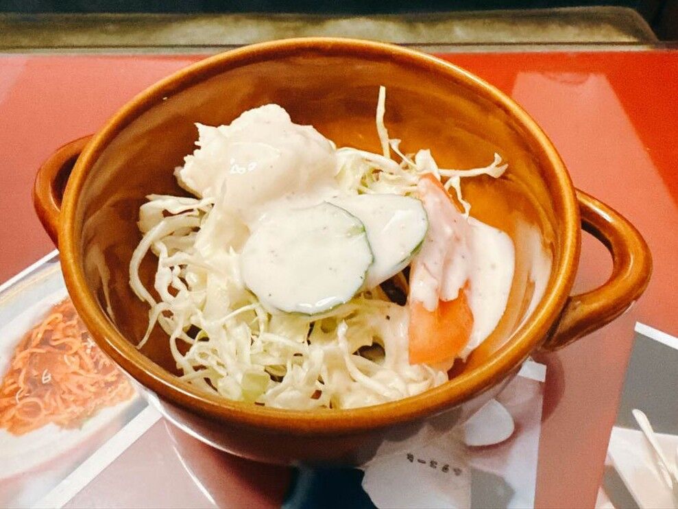 しばらくしてナイフフォークと割り箸が運ばれてきます。フォークには持ち手ではなく葉の部分に模様がつけられています。昭和の美意識でしょう。